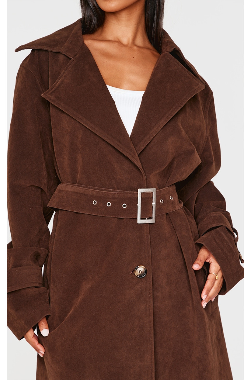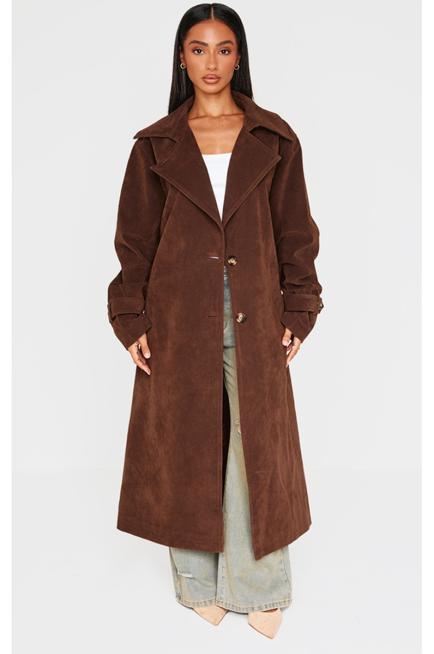 Додайте модного стилю штучної замші у свою колекцію верхнього одягу з цим мініатюрним тренчем із штучної замші кольору шоколаду з поясом. Виготовлений зі штучної замші кольору шоколаду з дизайном з поясом, як ви можете встояти? Стиль цього тренча підійде до вашого денного вбрання, щоб завершити будь-який образ. Довжина приблизно 119 см/47 дюймів (на основі розміру вибірки UK 6) На моделі одягнено розмір UK 6/ EU 34/ AUS 6/ US 2. Зріст моделі — 5 футів 2 дюйма. Категорія: Верхній одяг. Тип продукту: Тренч. Колір: Шоколад. Матеріал: Велюр. V NeckSleeves: LongOccasion: Вечір