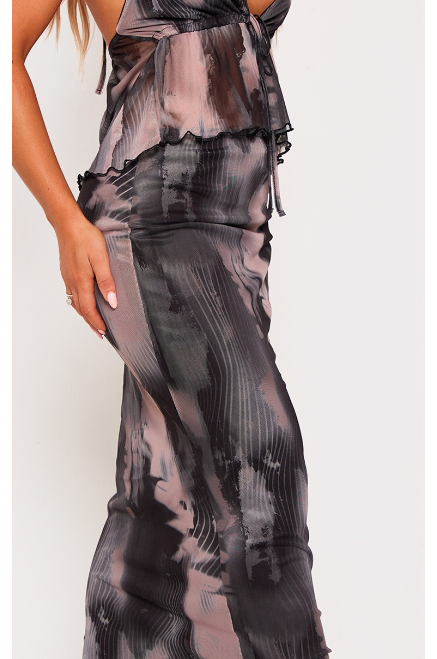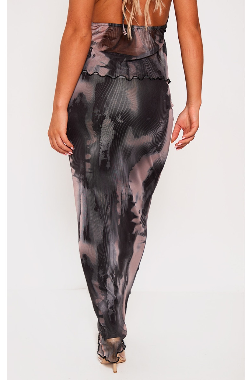 Чорна сітчаста спідниця Midaxi з абстрактним принтом і низькою посадкою