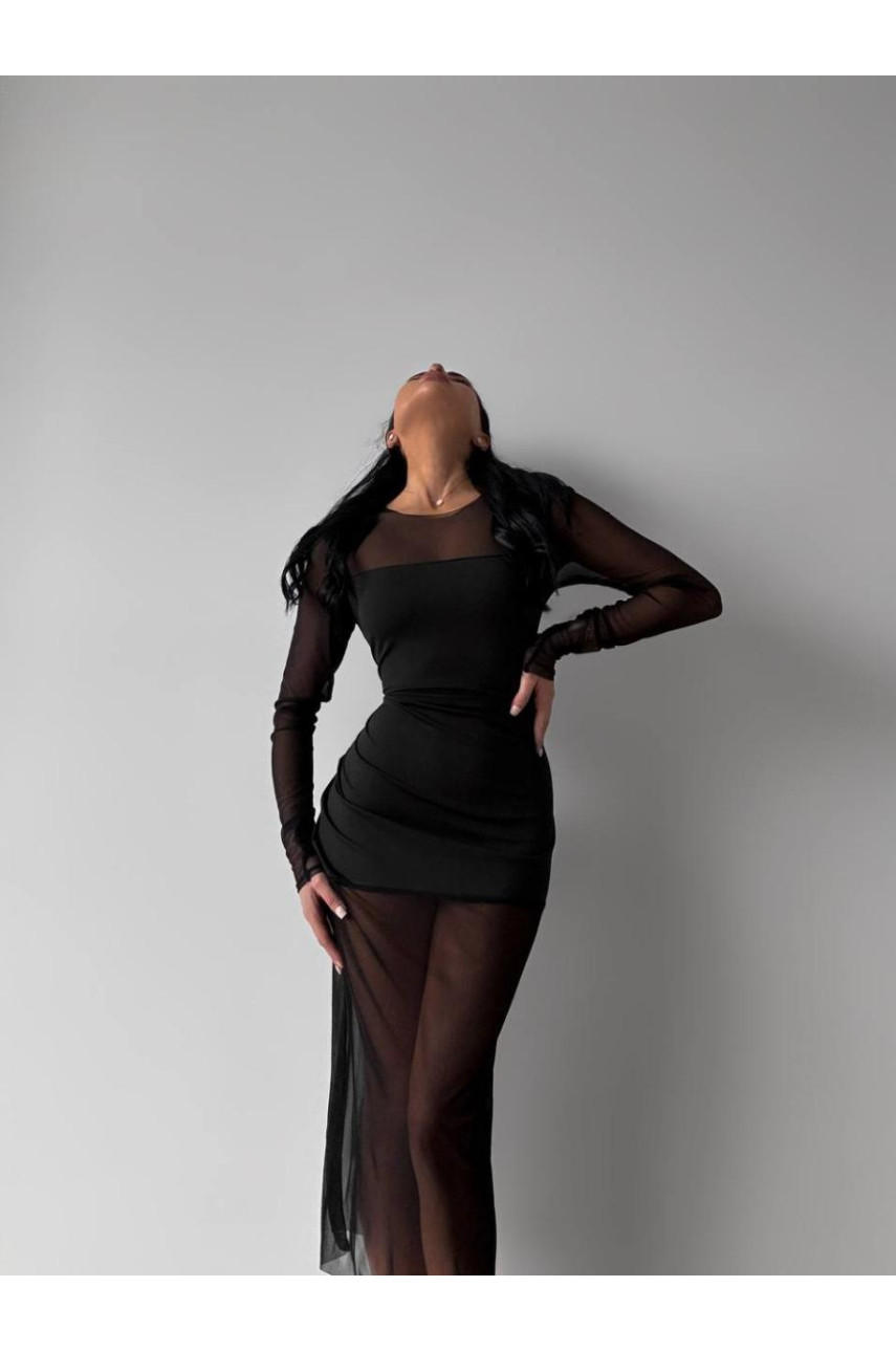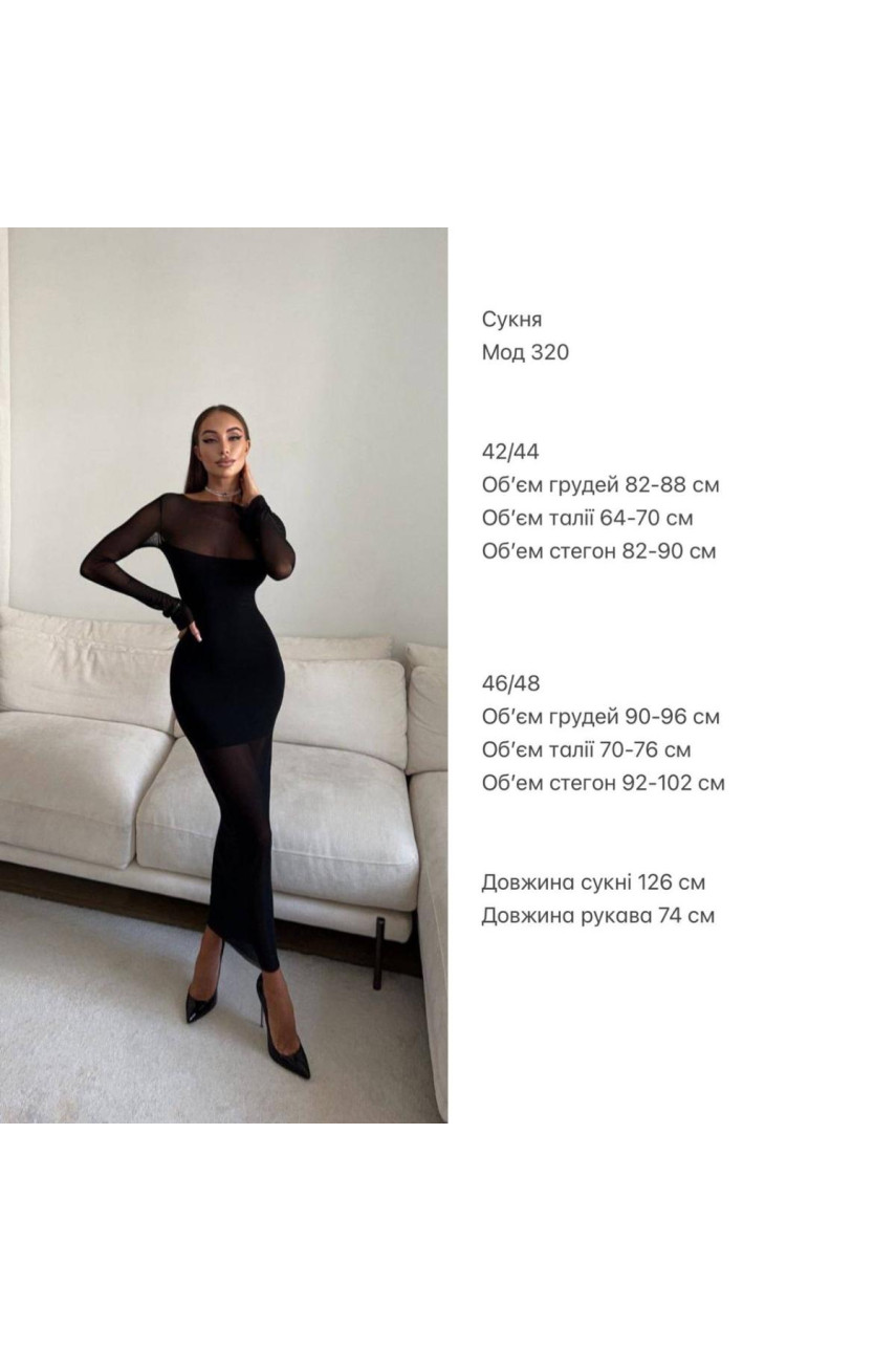 Сукня Модель Розмір: 42-44, 46-48 Тканина: мікродайвінг+сітка Колір: чорний Розкішна перлина нової колекції — сукня, у довжині міді Підійде на будь-яку подію❤️