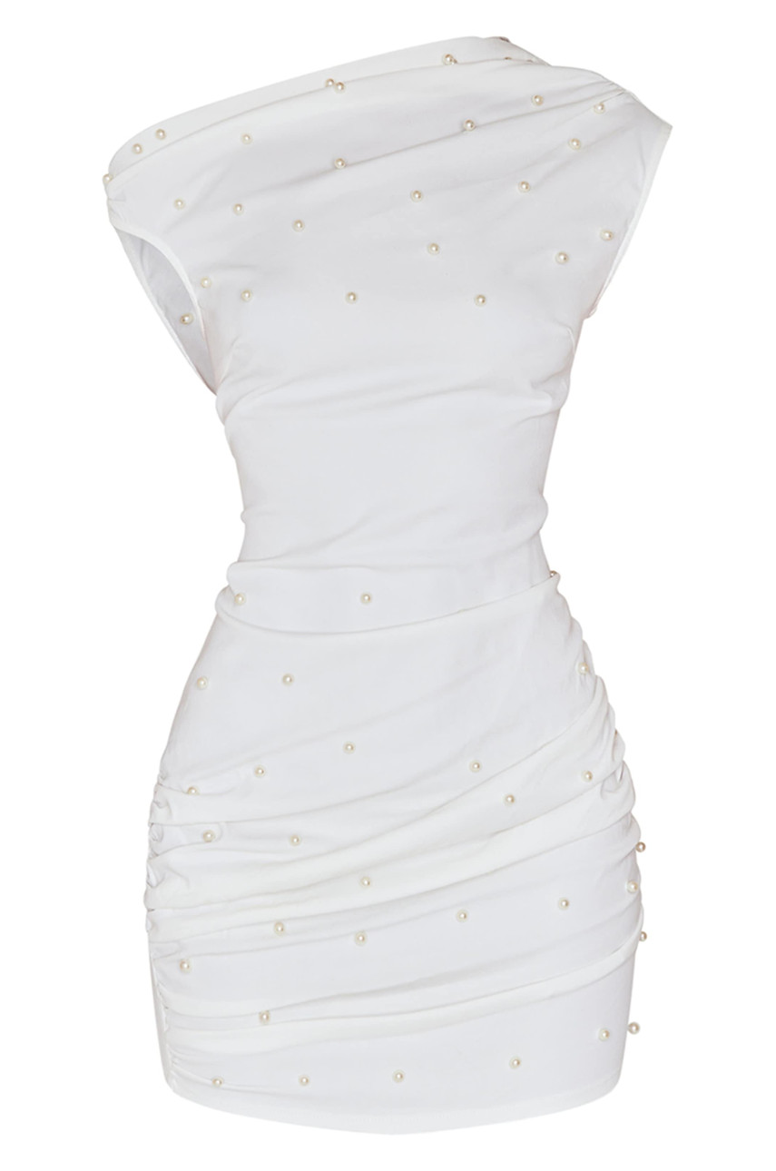 Проведіть ніч у цій білій міні-сукні з плетеними перлами. Ця сукня яскравого білого кольору з розкішним плетеним матеріалом і перламутровими деталями обов’язково вирішить вашу дилему «що одягнути». Стилізуйте прості аксесуари та туфлі на підборах, щоб плаття зробило решту роботи. Довжина приблизно 81 см/32 дюйма (на основі розміру вибірки UK 8) На моделі одягнено розмір UK 8/ EU 36/ AUS 8/ US 4. Зріст моделі — 5 футів 10 дюймів. Категорія: Сукні. Тип продукту: Облягаюча сукня. Колір: білий. ShortOccasion: вечір