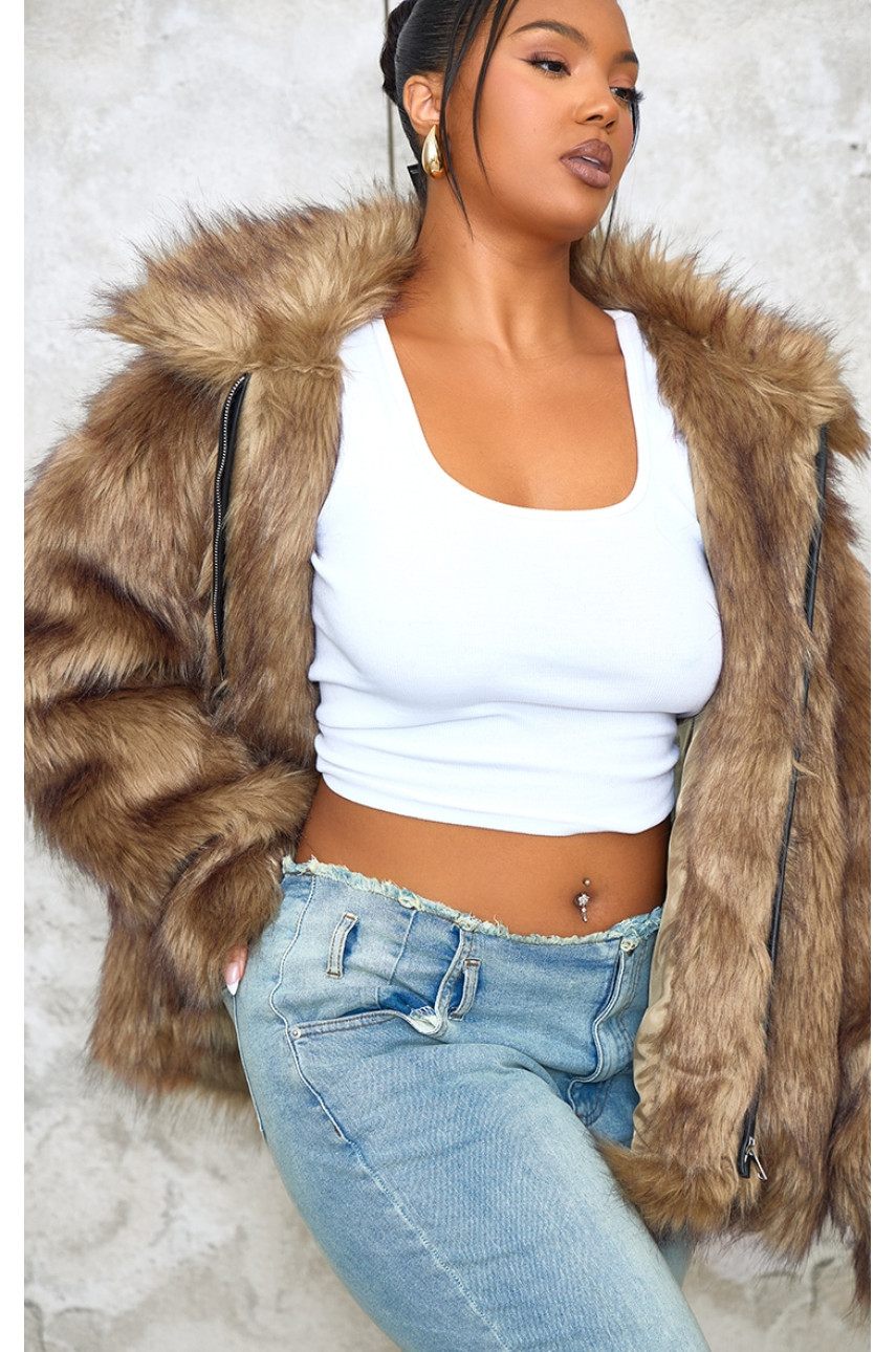 Плюс темно-коричневе пальто великого розміру зі штучного хутра