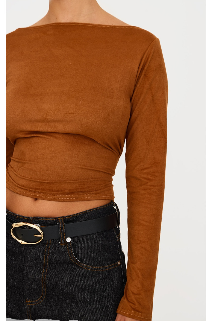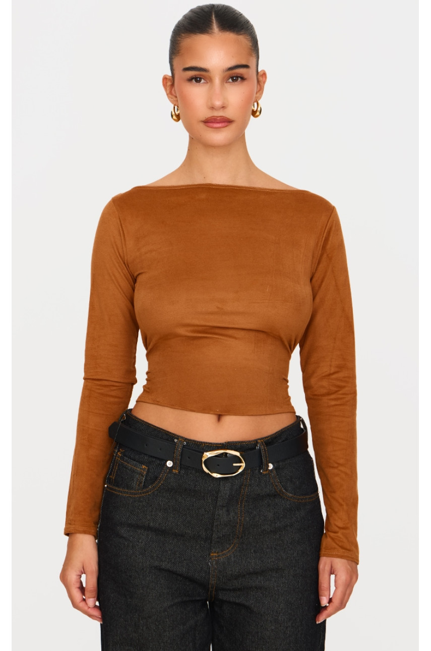 Доповніть свою нейтральну колекцію цим топом із довгим рукавом із штучної замші та вирізом-човником. Ви точно будете одержимі цим топом зі штучної замші кольору темно-коричневого кольору з вирізом-човником і довгим рукавом. Об’єднайтеся з улюбленими аксесуарами та парою туфель на підборах, щоб виглядати як ніхто інший. Довжина приблизно 48 см/19 дюймів (на основі розміру вибірки UK 8) На моделі одягнено розмір UK 8/ EU 36/ AUS 8/ US 4. Зріст моделі — 5 футів 7 дюймів. Категорія: Топи. Тип продукту: Приталена футболка. Колір: коричневий.Матеріал: штучна замша. : Прямі рукави з горловиною: Довгий випадок: вечір