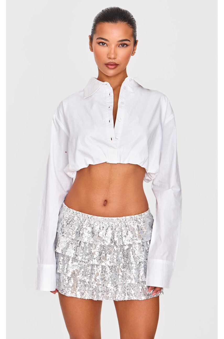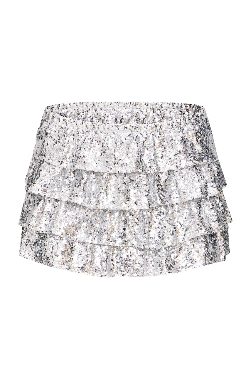 Срібляста багаторівнева міні-спідниця з оборками з паєтками