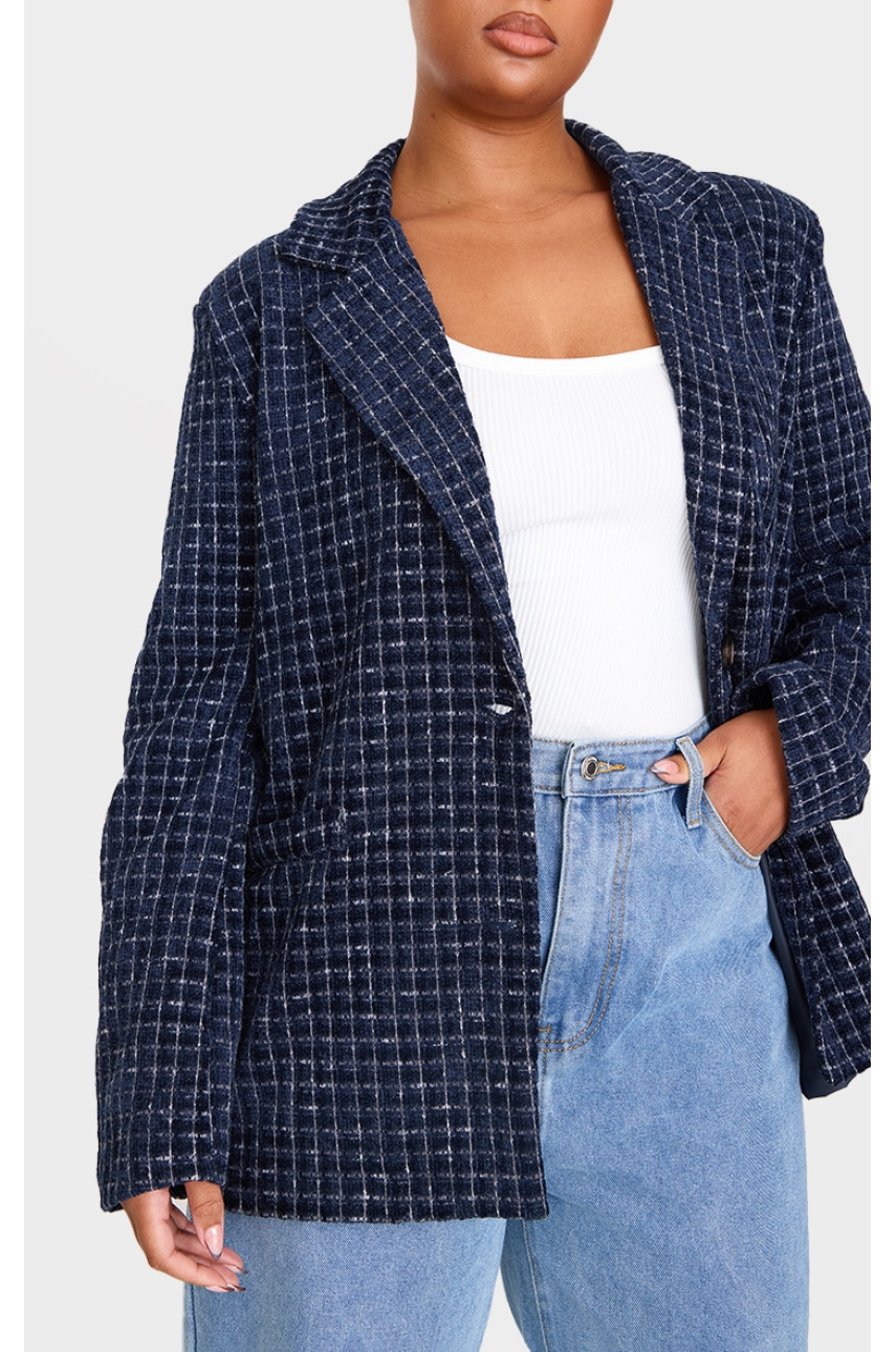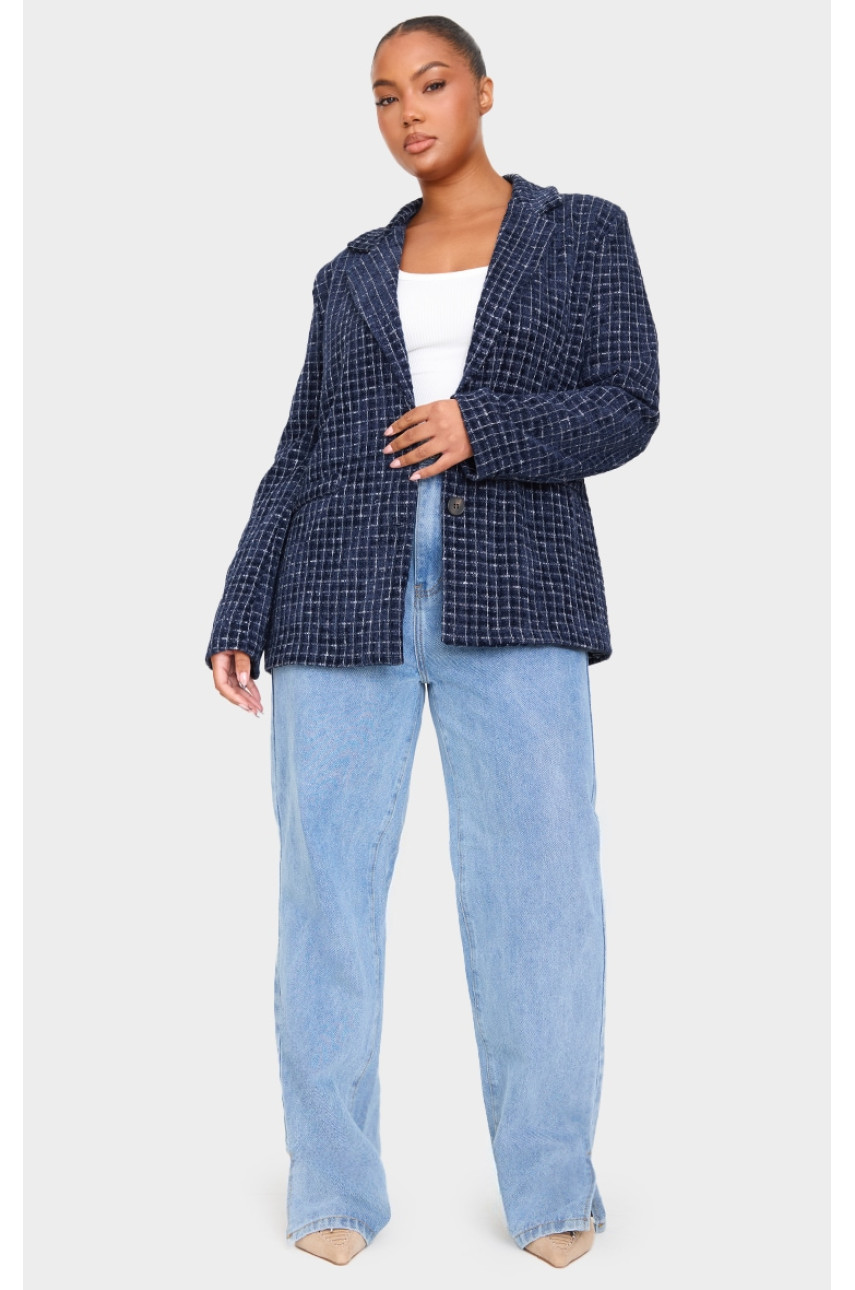 Виділяйтеся з-поміж інших із цим темно-синім піджаком у клітинку з букле. Цей плюсовий блейзер із темно-синього матеріалу букле в клітинку обов’язково приверне увагу. Об’єднайтеся з парою джинсів і простою футболкою, щоб створити образ, який принесе вам усі бали стилю незалежно від події. Довжина приблизно 73 см/28,5 дюйма (на основі розміру вибірки UK 16) На моделі одягнено розмір UK 16/ EU 44/ AUS 16/ US 12. Зріст моделі — 5 футів 6 дюймів. Категорія: Верхній одяг. Тип продукту: Приталений піджак. Колір: темно-синій. Матеріал: штучна шерсть. LongOccasion: День