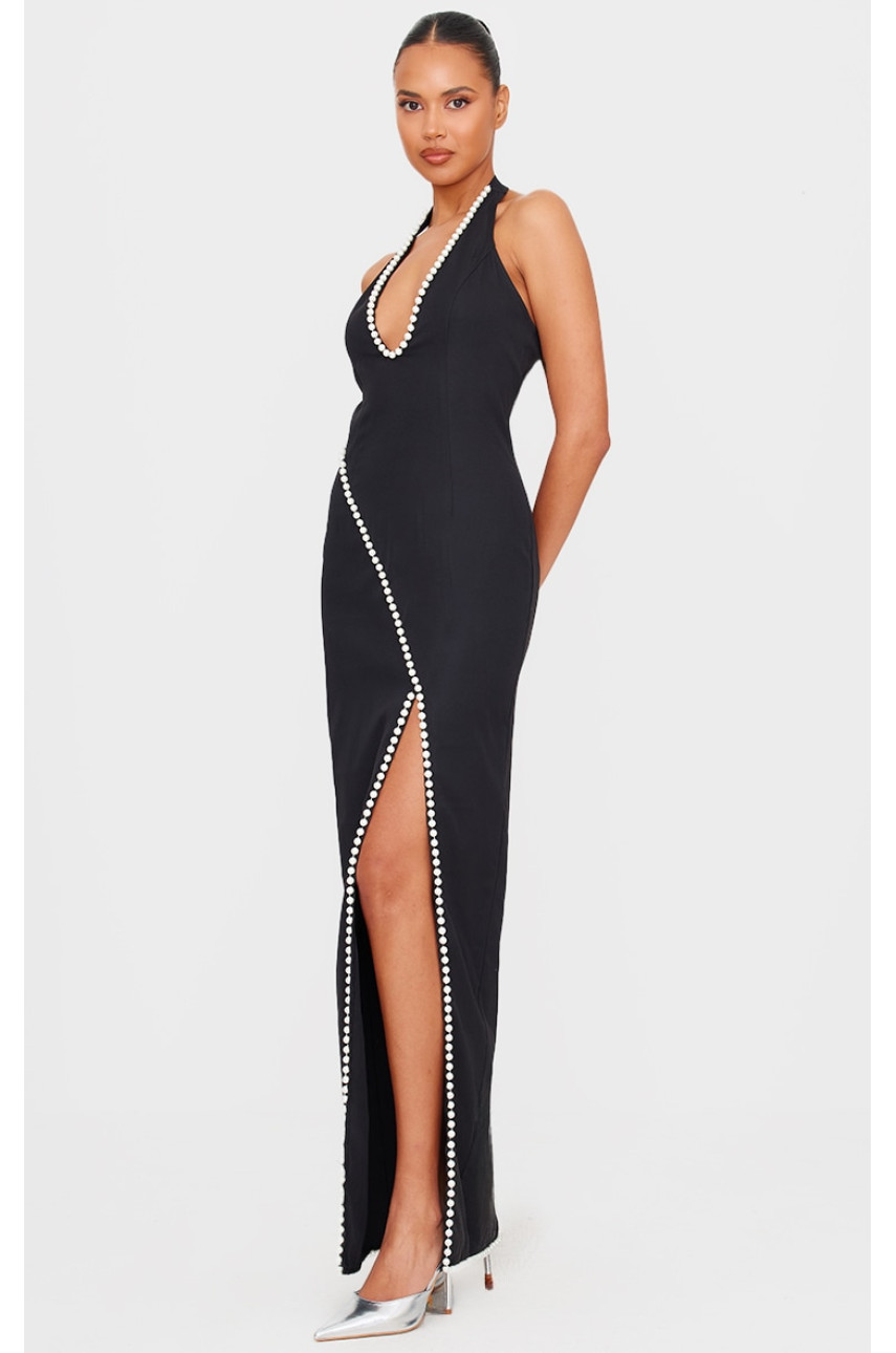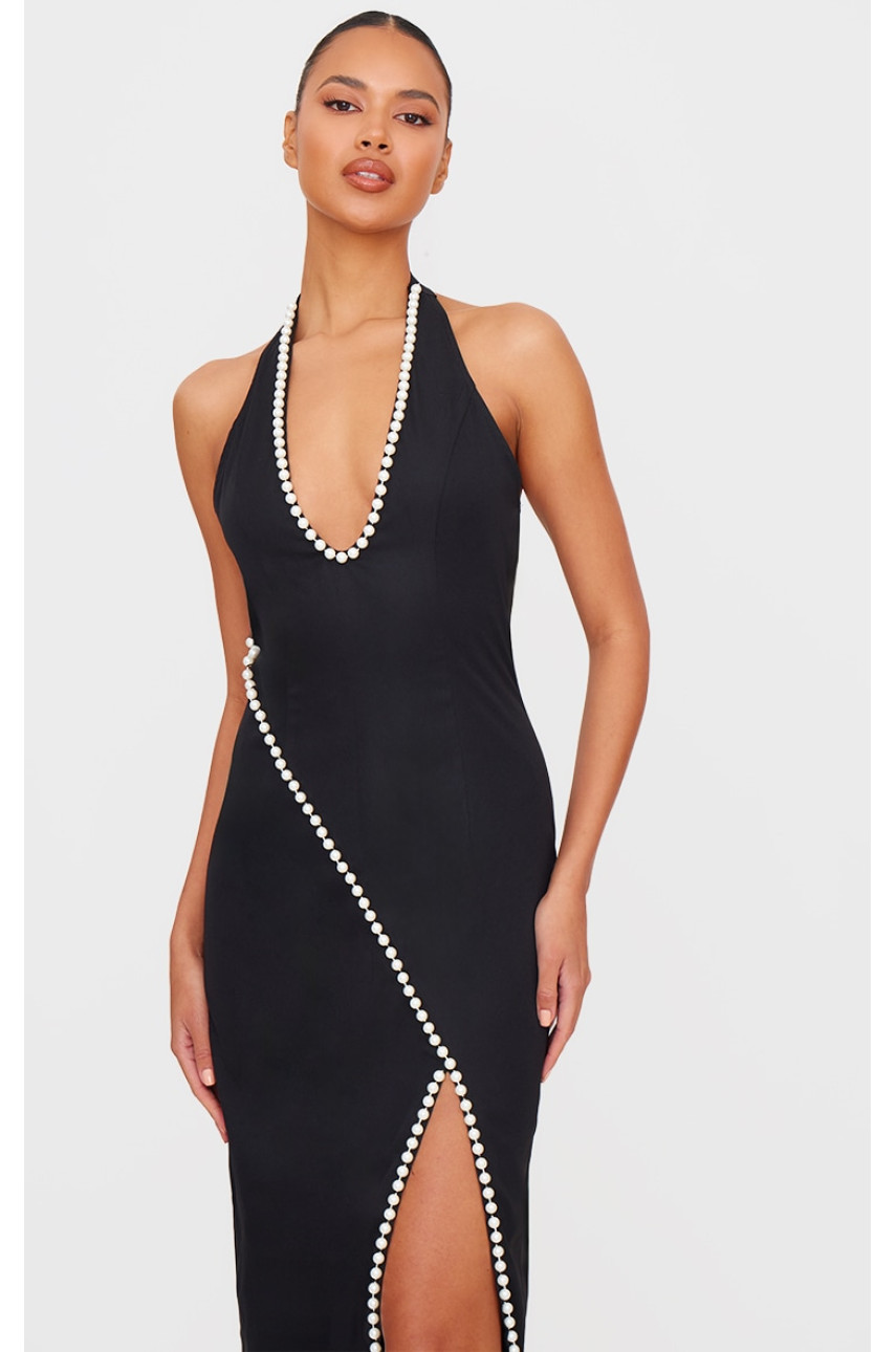 Підніміть свій вечірній образ на нову висоту за допомогою цієї максі-сукні з чорним перламутровим розрізом. Ця максі-сукня, представлена в нейтральному чорному відтінку, з розкішними перламутровими деталями та приємним дизайном з бічними розрізами, обов’язково змусить вас почуватися впевнено. Стилізуйте туфлі на підборах і прості аксесуари, щоб сукня говорила за все. Довжина приблизно 155 см/61" (на основі розміру вибірки UK 8) Модель носить розмір UK 8/ EU 36/ AUS 8/ US 4. Зріст моделі - 5 футів 9 дюймів. Категорія: Сукні. Тип продукту: Обтягуюча сукня. Колір: чорнийМатеріал: Тканий креп. Виріз: Глибокі рукави: Без рукавів. : Привід