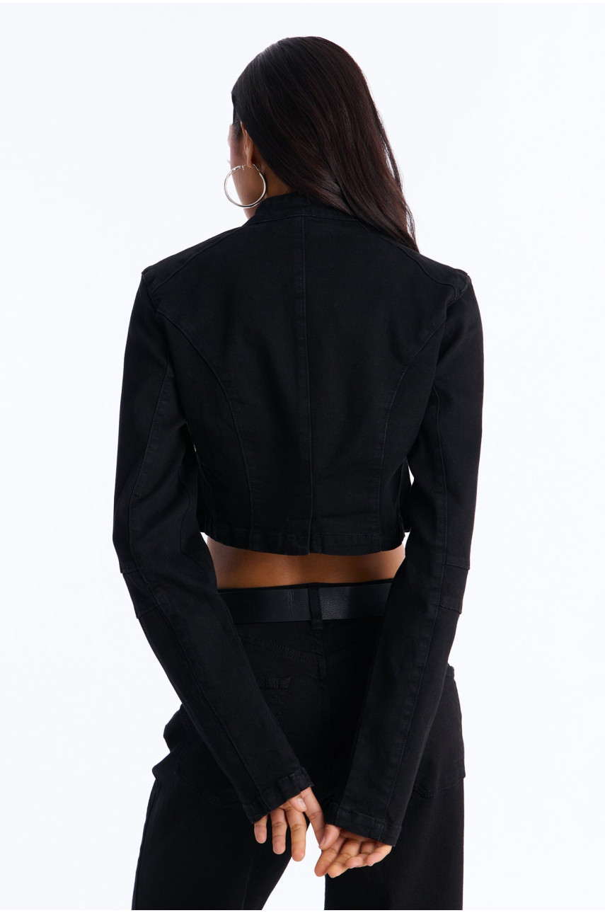 Представляємо джинсовий блейзер "Кадет" – сучасний елемент гардеробу для стильної жінки. Виготовлений з еластичного деніму, він забезпечує неперевершений комфорт та свободу рухів. Відкритий передній крій надає образу невимушеності, а класичний чорний колір робить його універсальним. Цей блейзер стане вашим улюбленим вибором для створення ефектних кежуал-образів.