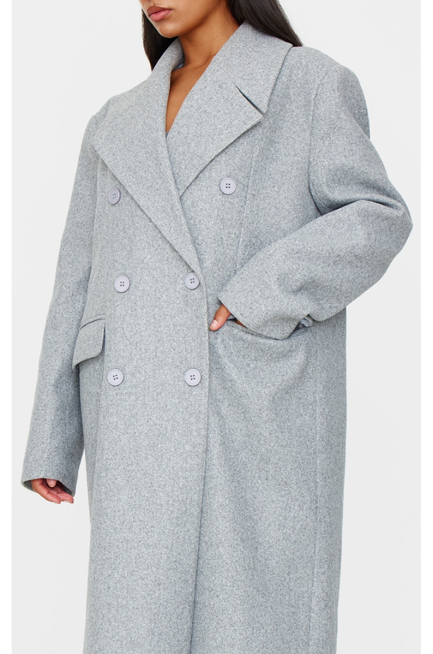 Двобортне оверсайз-максі пальто сірого вовняного образу