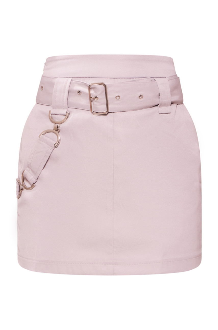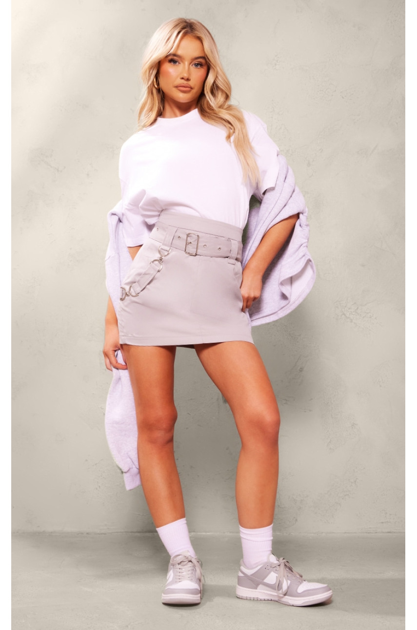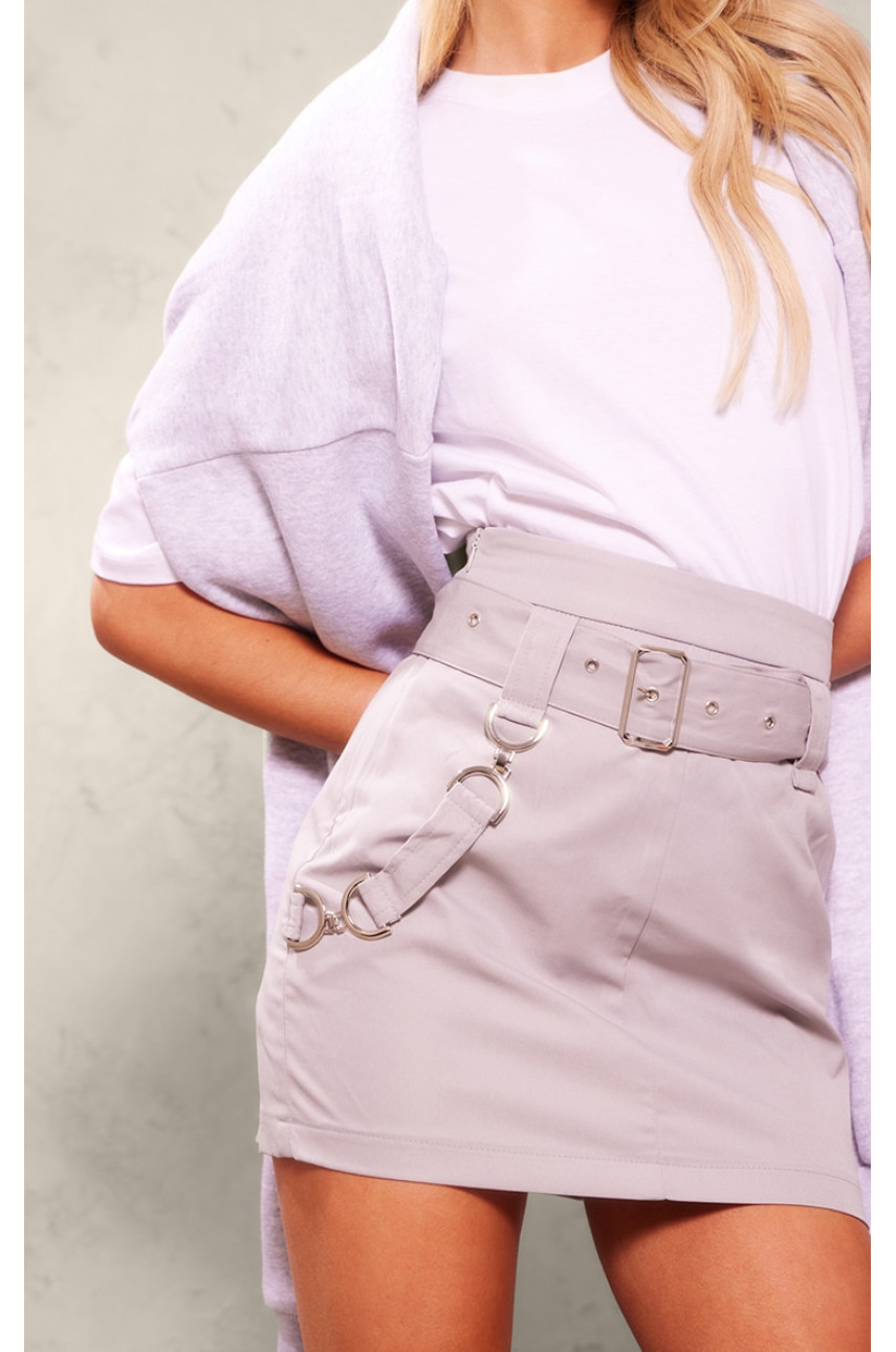 Світло-сіра плетена міні-спідниця з пряжками