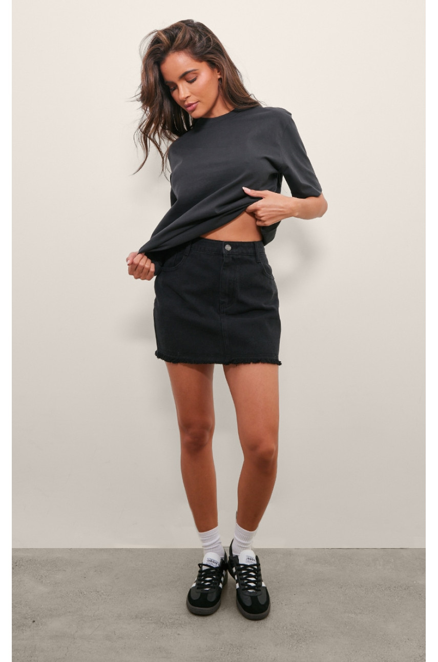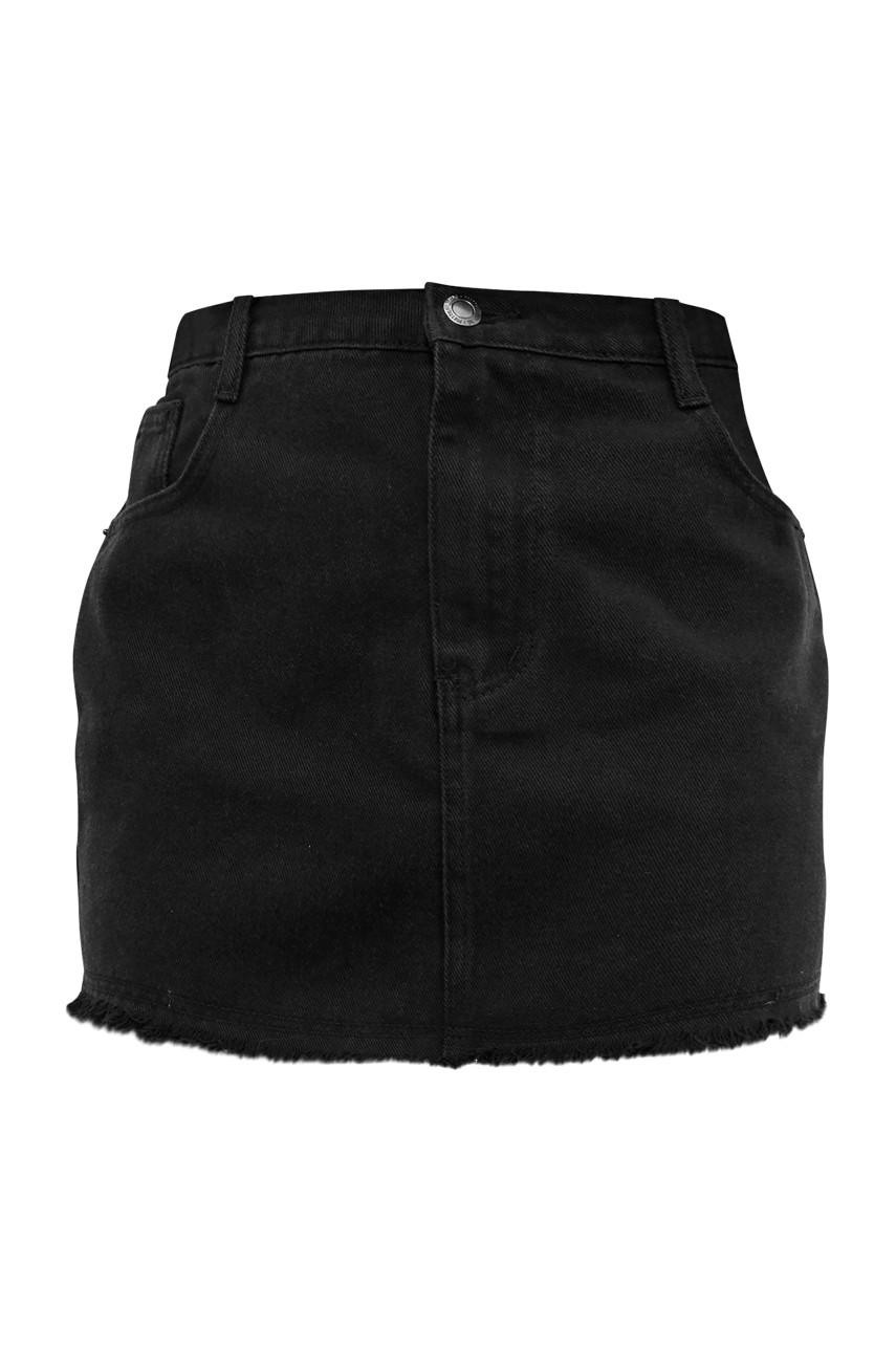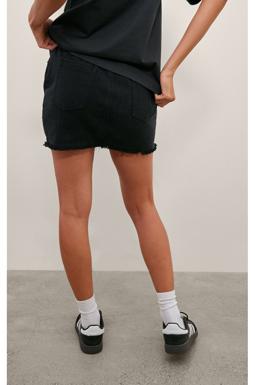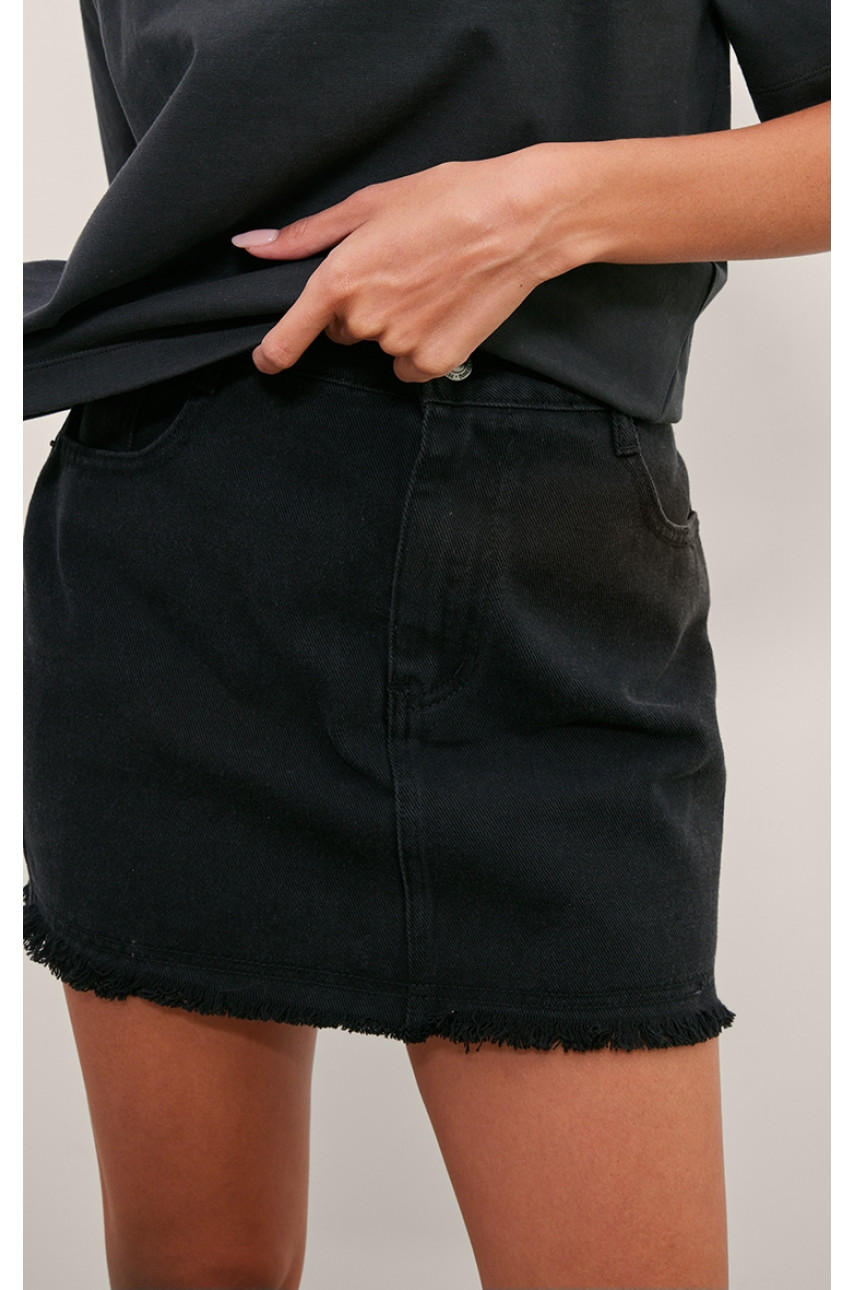 Випрана чорна джинсова міні-спідниця з необробленого подолу